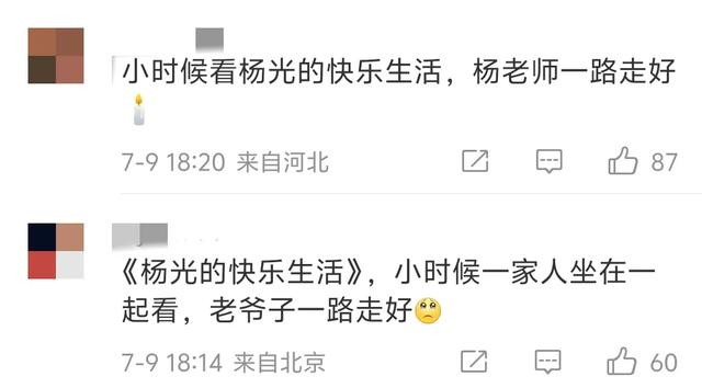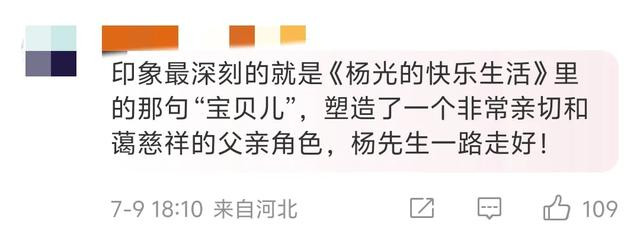 网友们也自发送老爷子最后一程。不少人都是看着《杨光的快乐生活》长大的,且老爷子一生乐观向上,没有污点。这一走,又会勾起多少人童年的回忆。